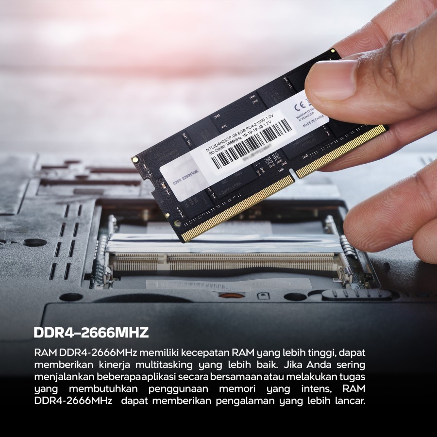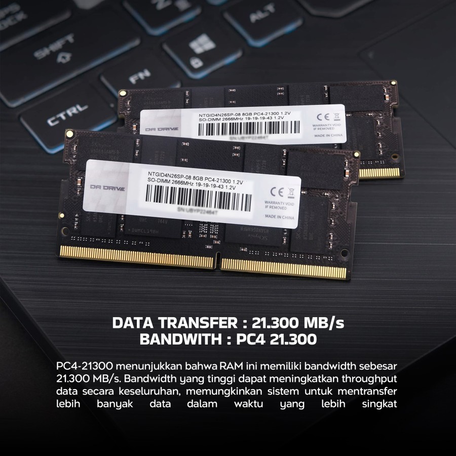 SO-DIMM DDR4 4GB 2666MHz PC4-21300 – RAM untuk Laptop dengan frekuensi 2666MHz dan kecepatan transfer 21.300 MB/s.