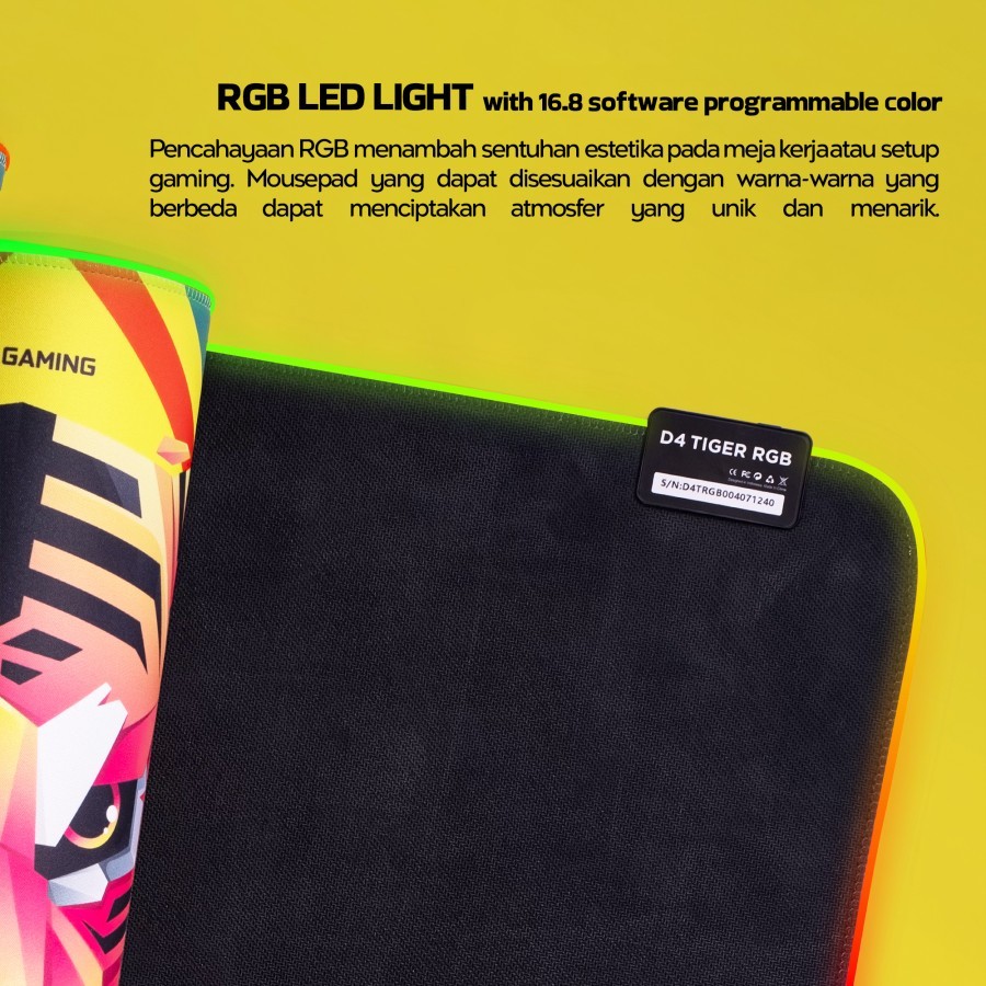 D4 Tiger Edition – D4 Tiger adalah Mousepad berkualitas premium yang dirancang untuk bermain game. D4 Tiger dioptimalkan untuk semua pengaturan sensitivitas dan sensor untuk responsif dan performa. Mousepad ini juga menawarkan ukuran yang ideal untuk mengakomodasi gerakan luas. Dengan ruang yang memadai, Anda dapat dengan leluasa menggerakkan mouse Anda tanpa khawatir terbatas oleh batasan ruang.