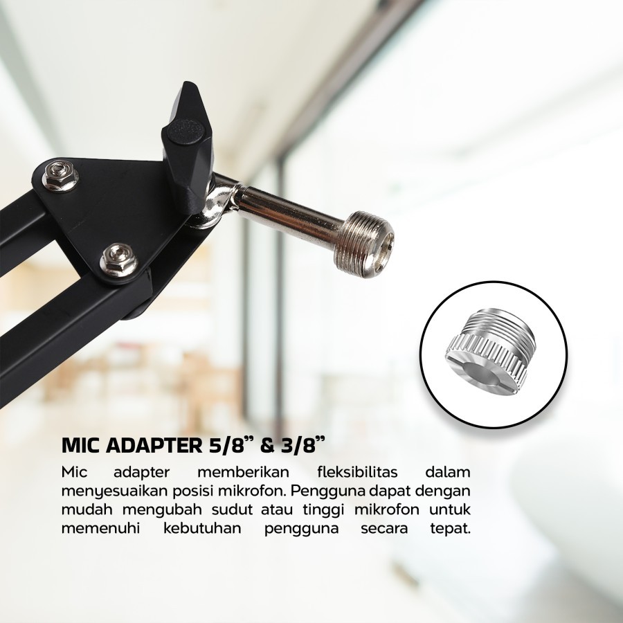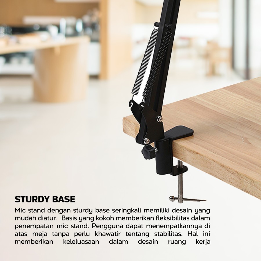 Arm Stand – Arm Stand yang memiliki keunggulan Dapat Disesuaikan dan Menghemat Ruang, Kompatibilitas Kuat, Tinggi, dan sudut yang sempurna untuk merekam/streaming.